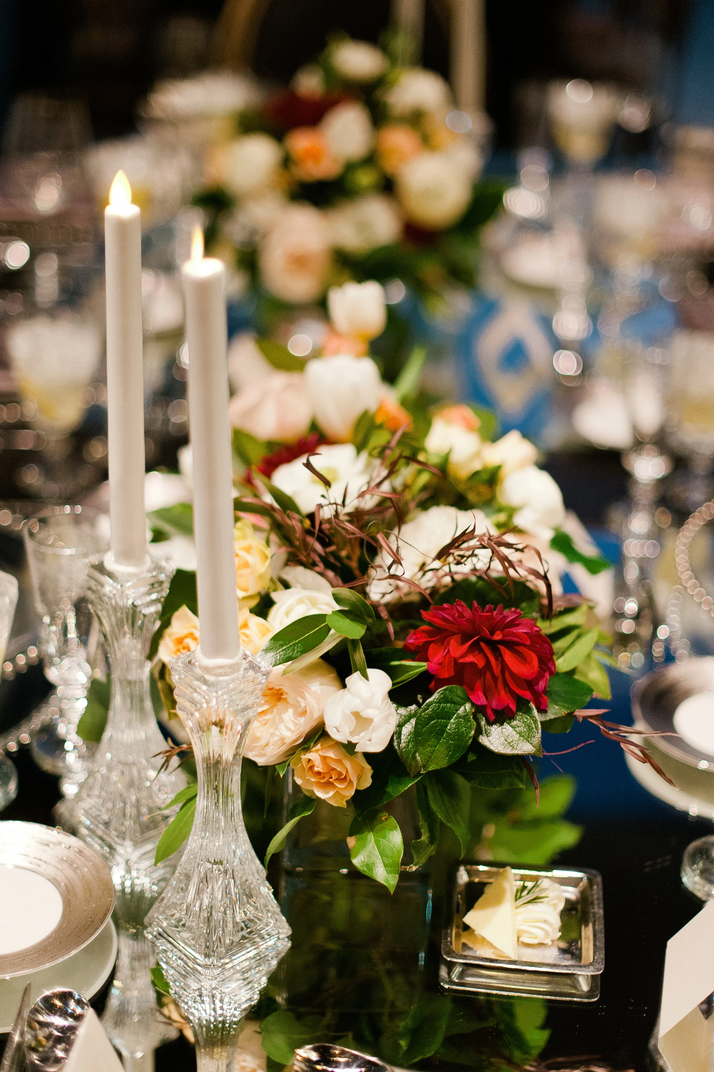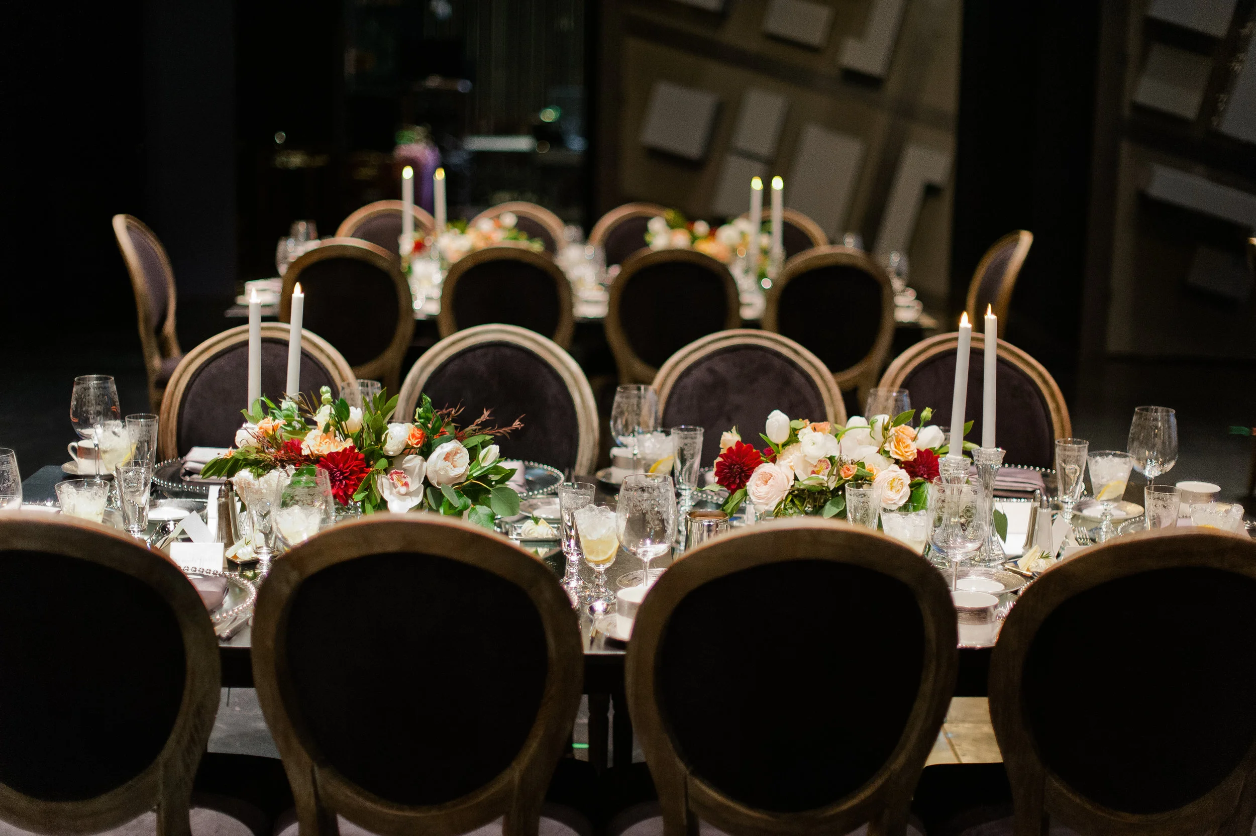 The dinner was surrounded by a three-dimensional skyline custom built to mimic New York City. From 5th Avenue shops to the Eiffel Tower - the surroundings brought to life an unforgettable experience and ambiance. To amplify the feel, fragrant Wisconsin raised floral were added, fresh lobster was one of the many menu selections and a dramatic lighting plan was perfected.