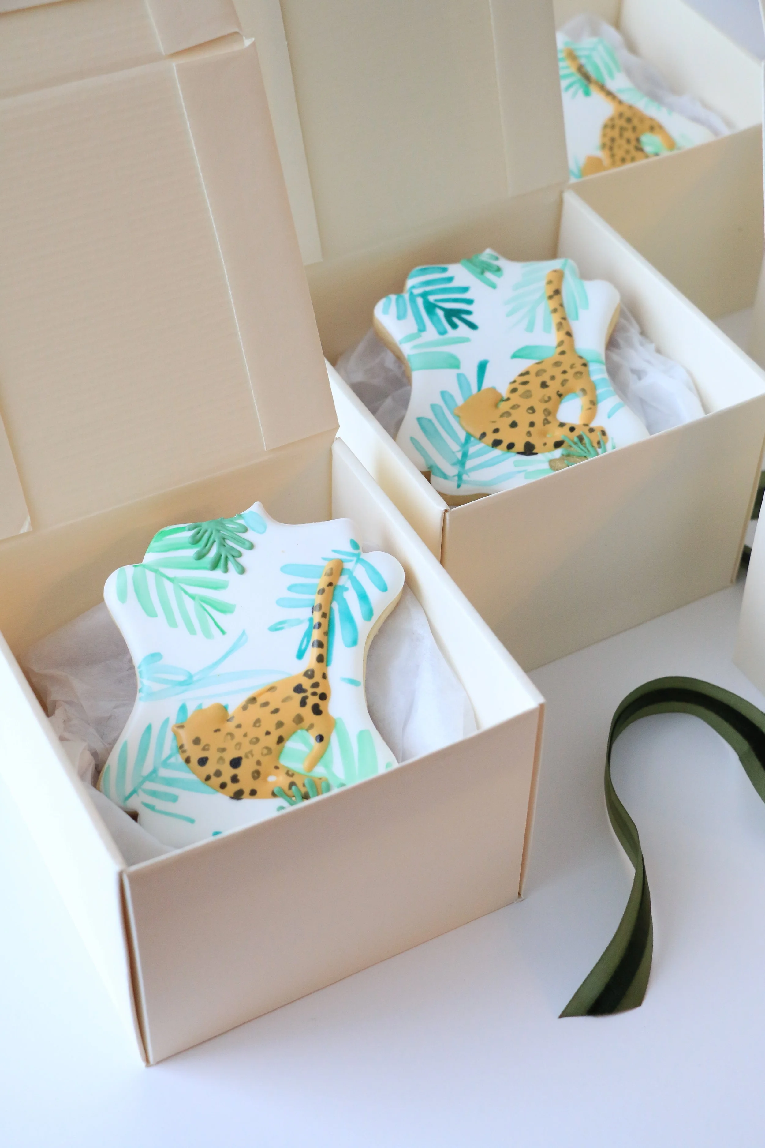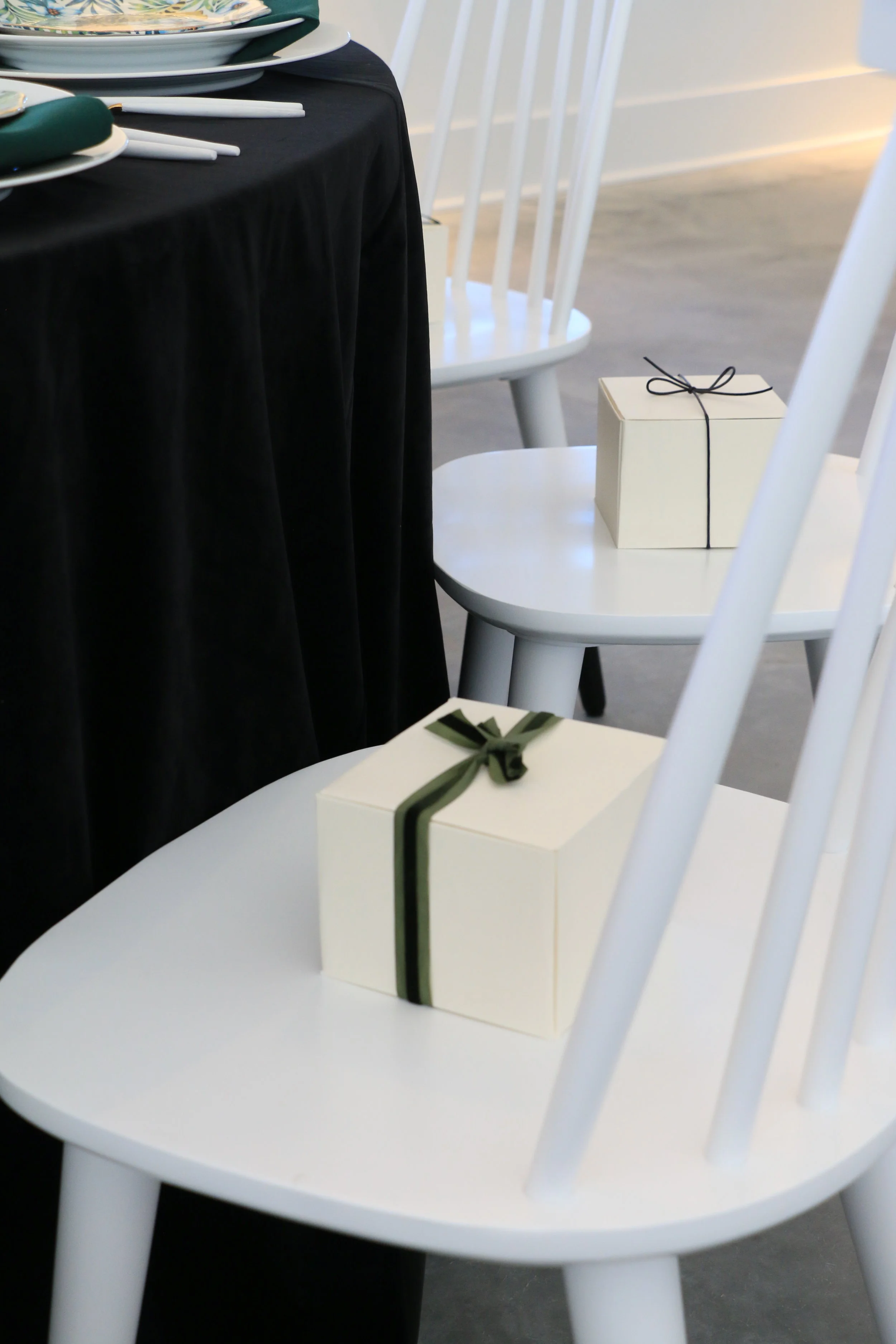 Cori Robinson, of The Cookie Creative in Minneapolis hand crafted cookie favors for the guest to take home. We packaged them in boxes and altered them with velvet centered ribbon and shimmer covered rope. These were beyond perfect, mentioned a bystander. We winked and let them know - they taste as good as they look!